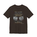 This Black History Shirt features photos of Malcolm X, George Washington Carver, Angela Davis, MLK at the Selma to Montgomery marches, No collors allowed signs, Montgomery Bus Boycott article, Photos of Jim Crow Protest and actual slaves.