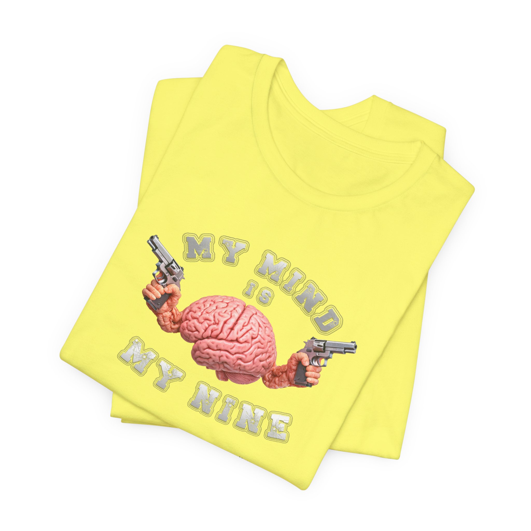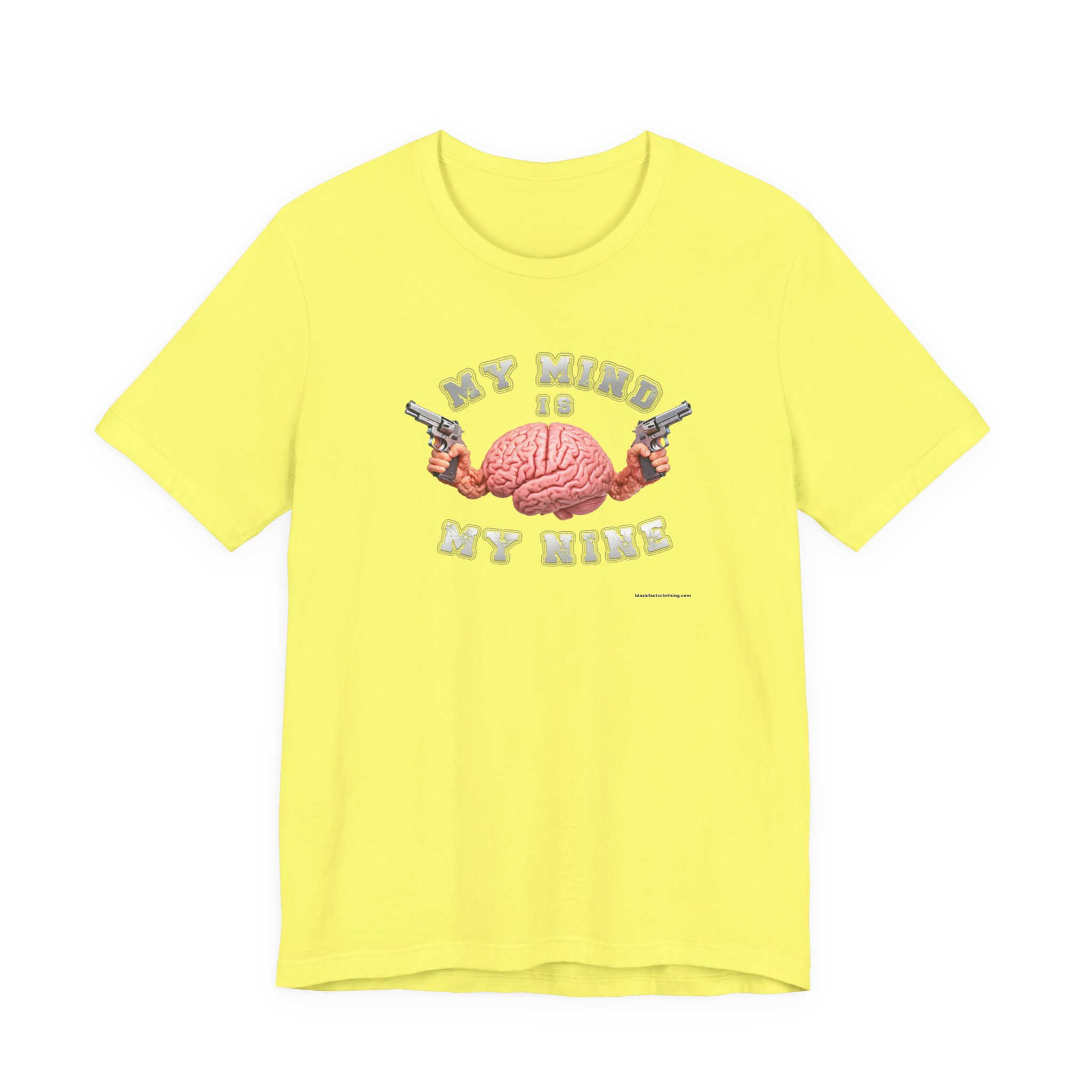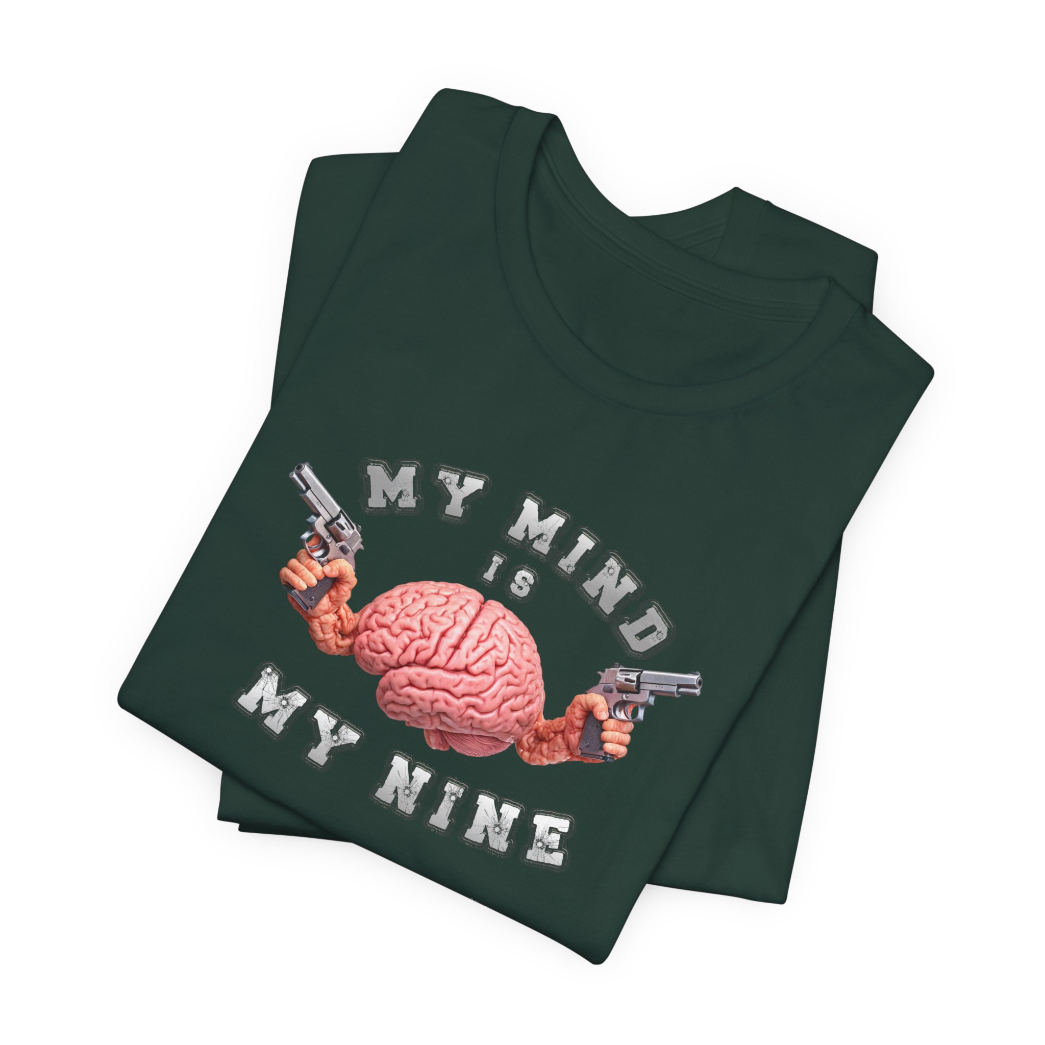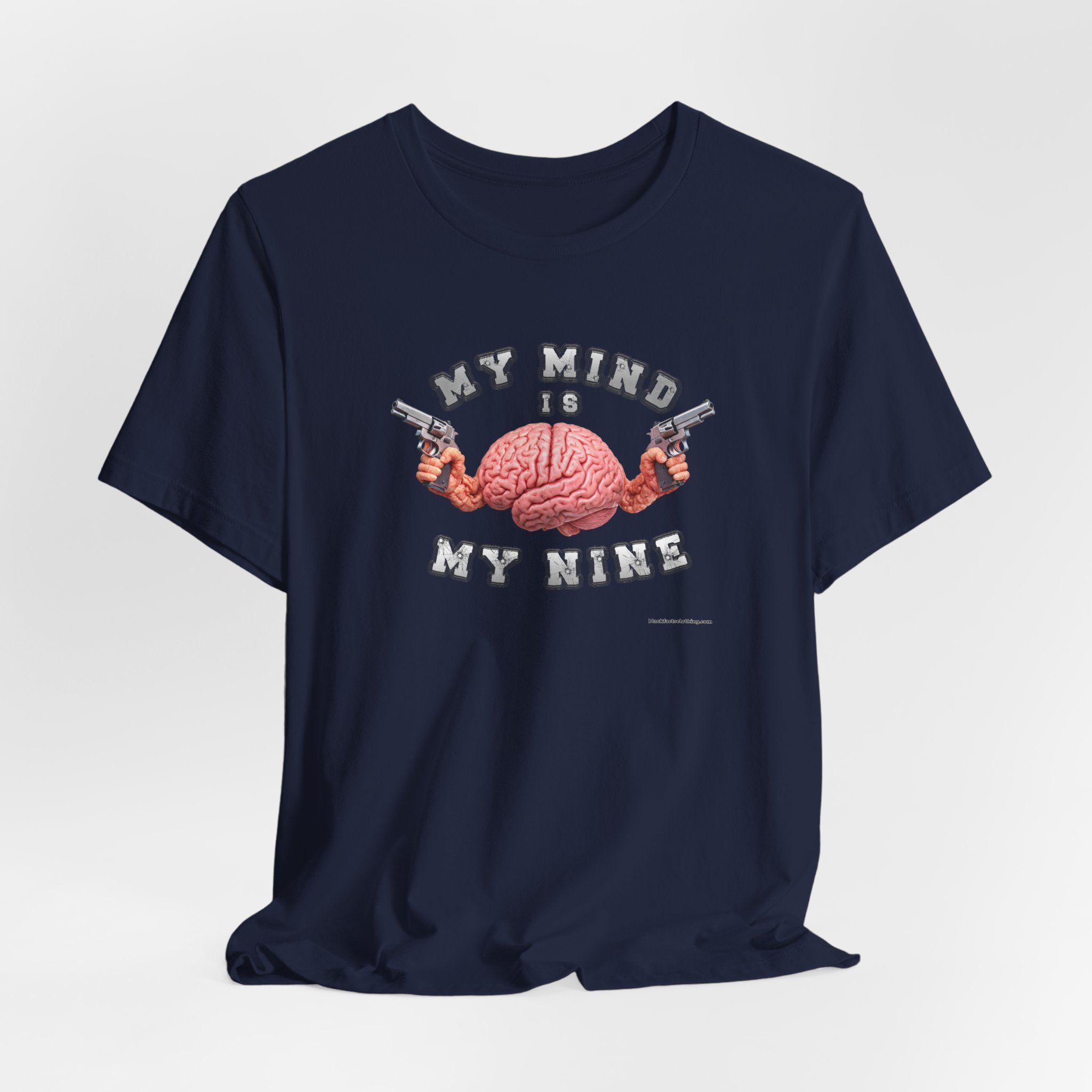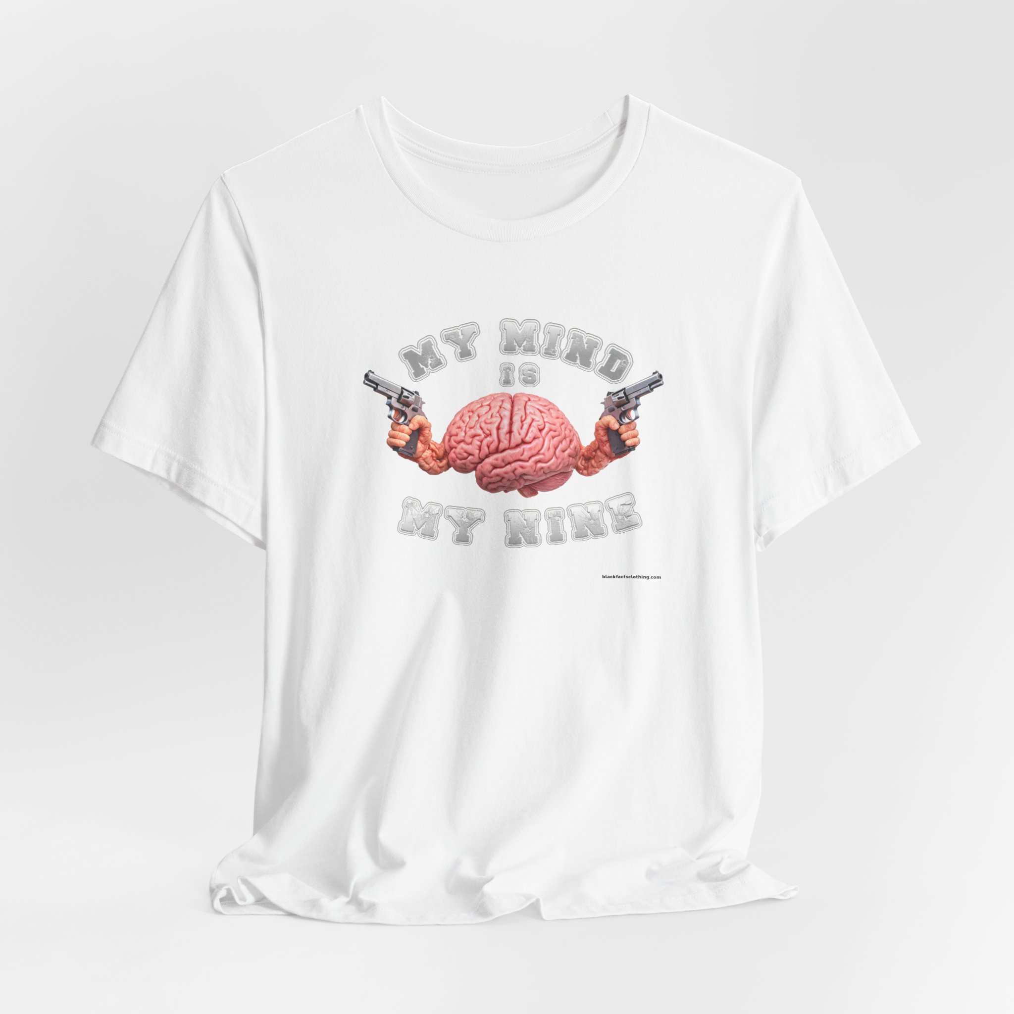 My Mind Is My Nine My mind is a weapon gun design arrives on the top quality soft bella canvas tee.